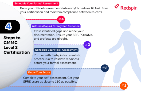 This infographic outlines the steps toward confidently entering your CMMC Level 2 formal assessment, ensuring you’re prepared, aligned, and ready when your contract requires it.